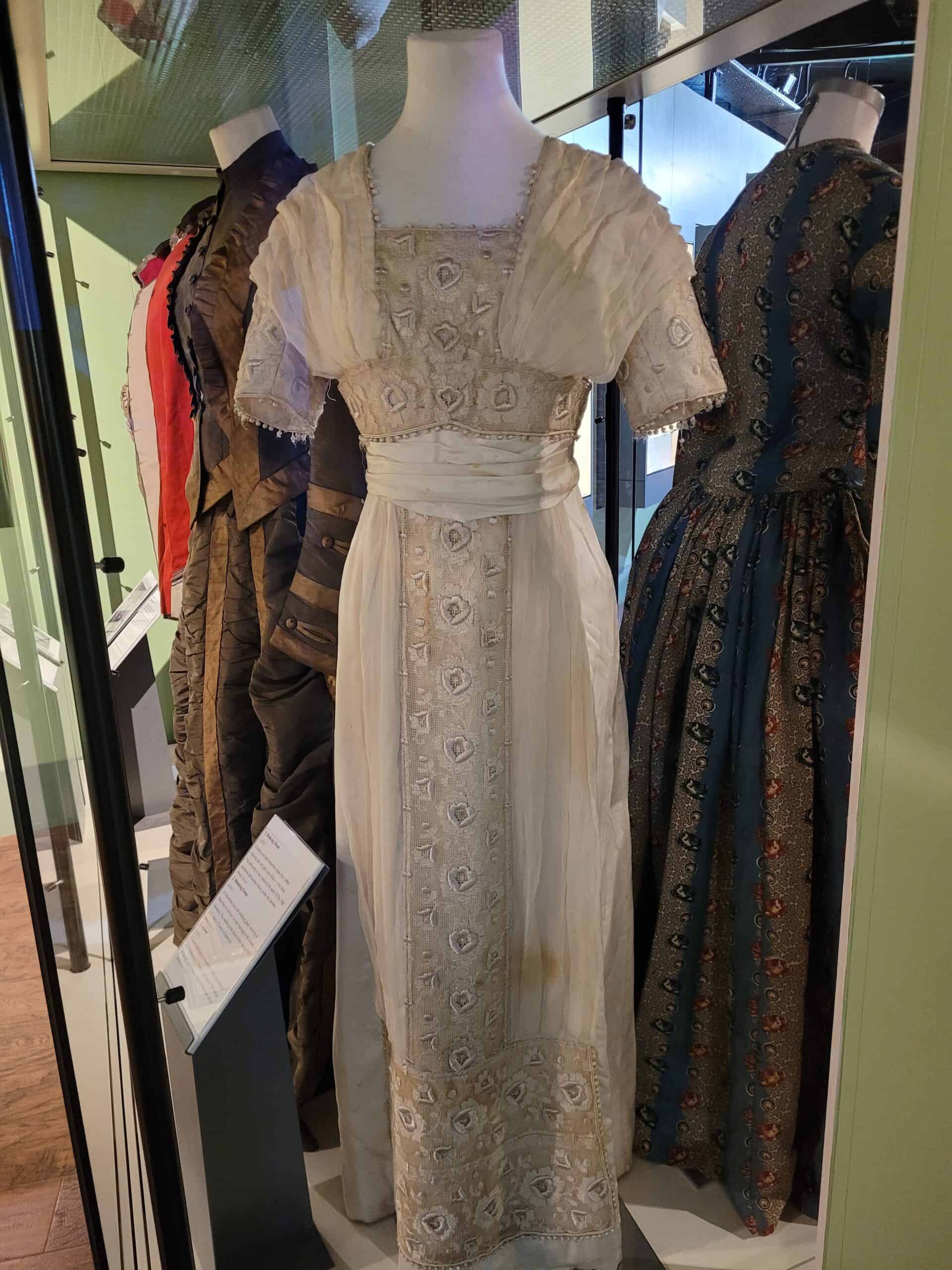 Visitors are welcome to drop in during the sessions to see how outfits of the period were created, explore the changing fashions of the period and the story behind the wedding dress.